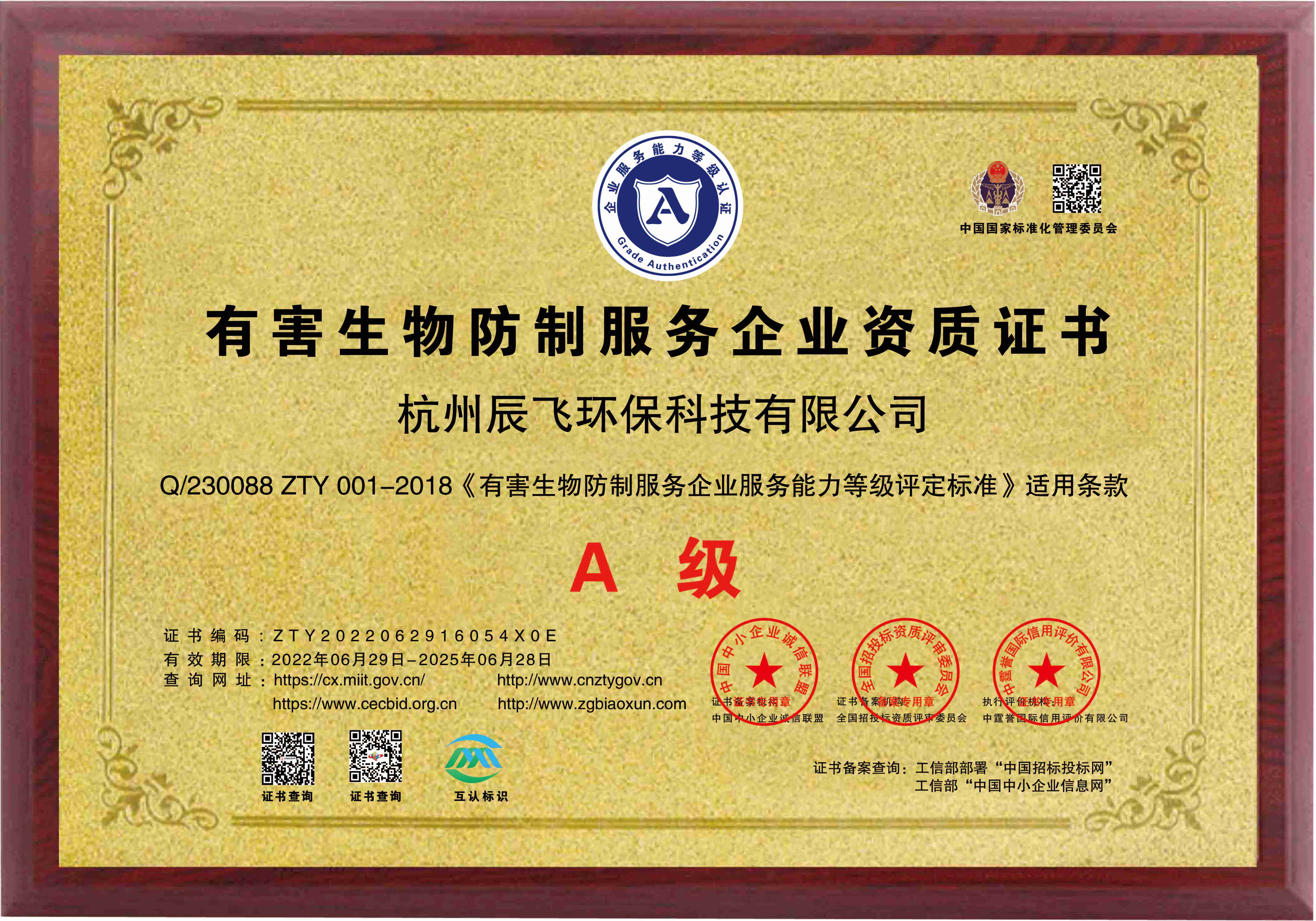 • 有害生物防制服務企業A級