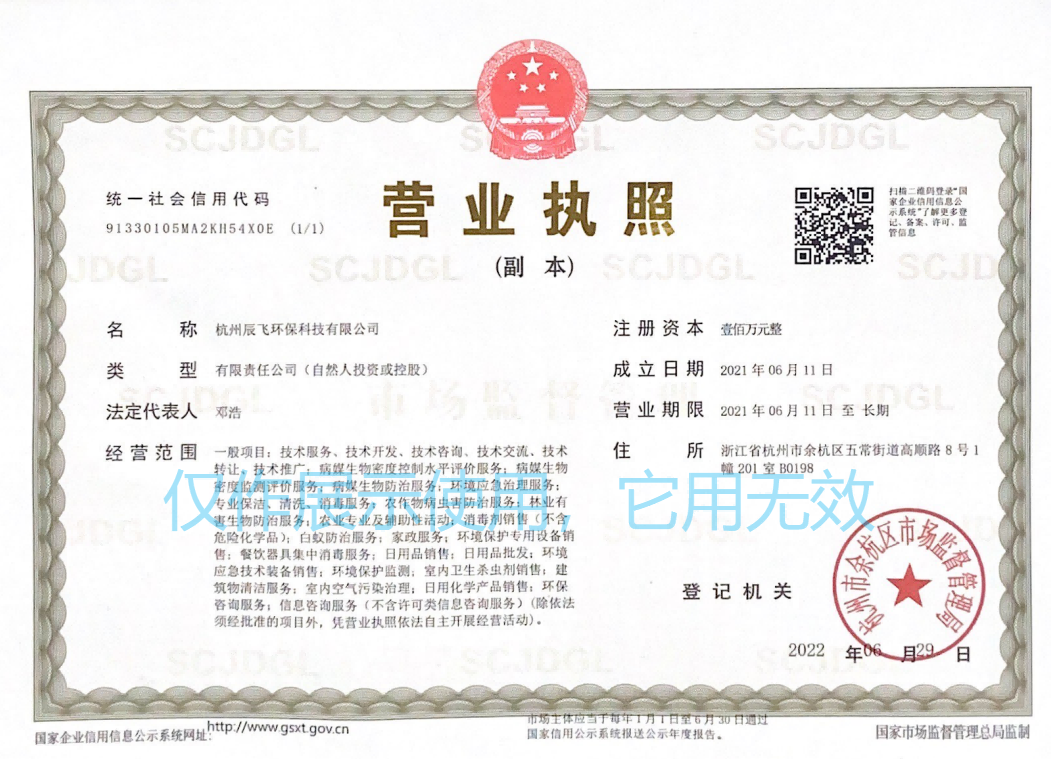 • 杭州辰飛環保營業執照